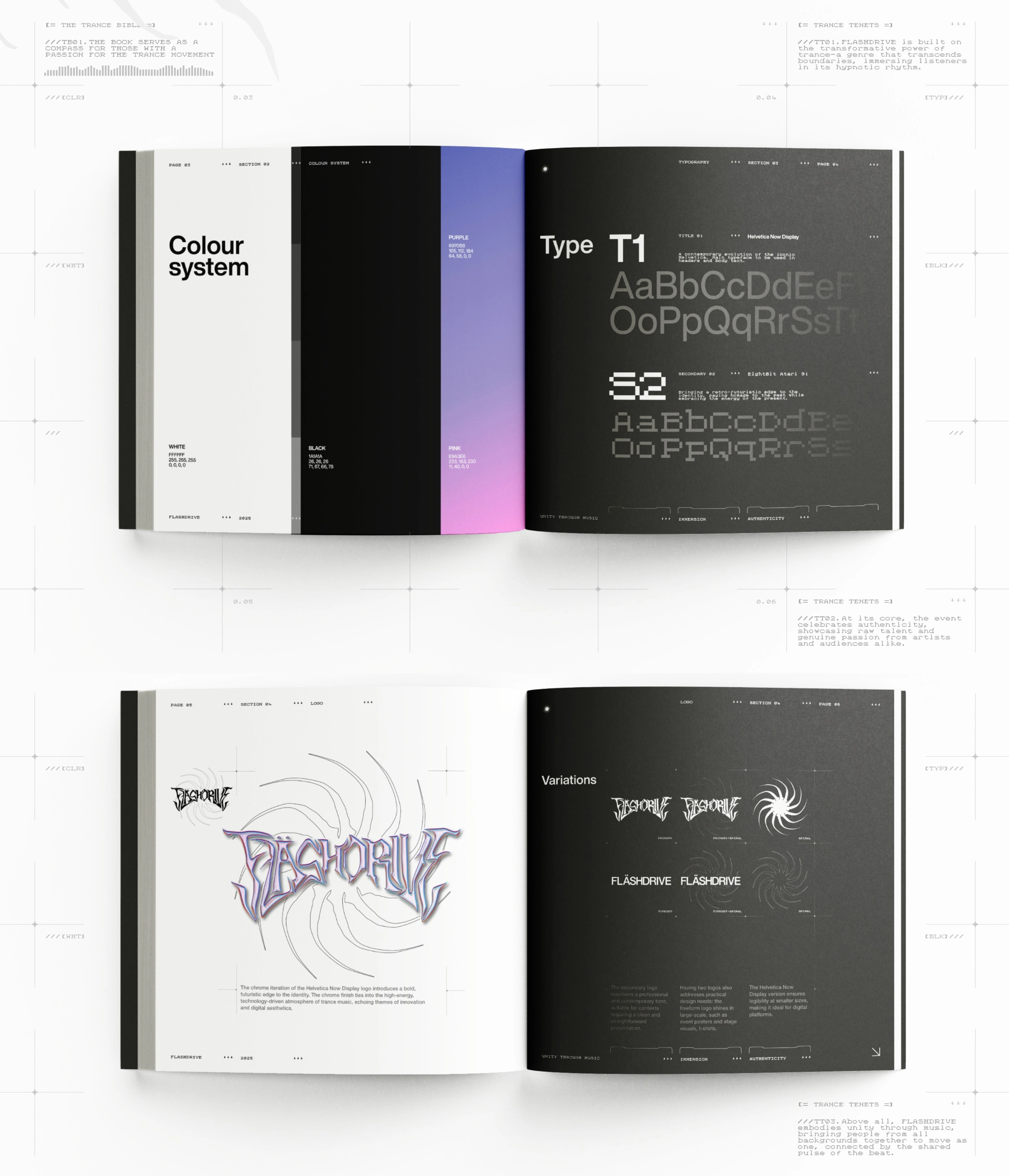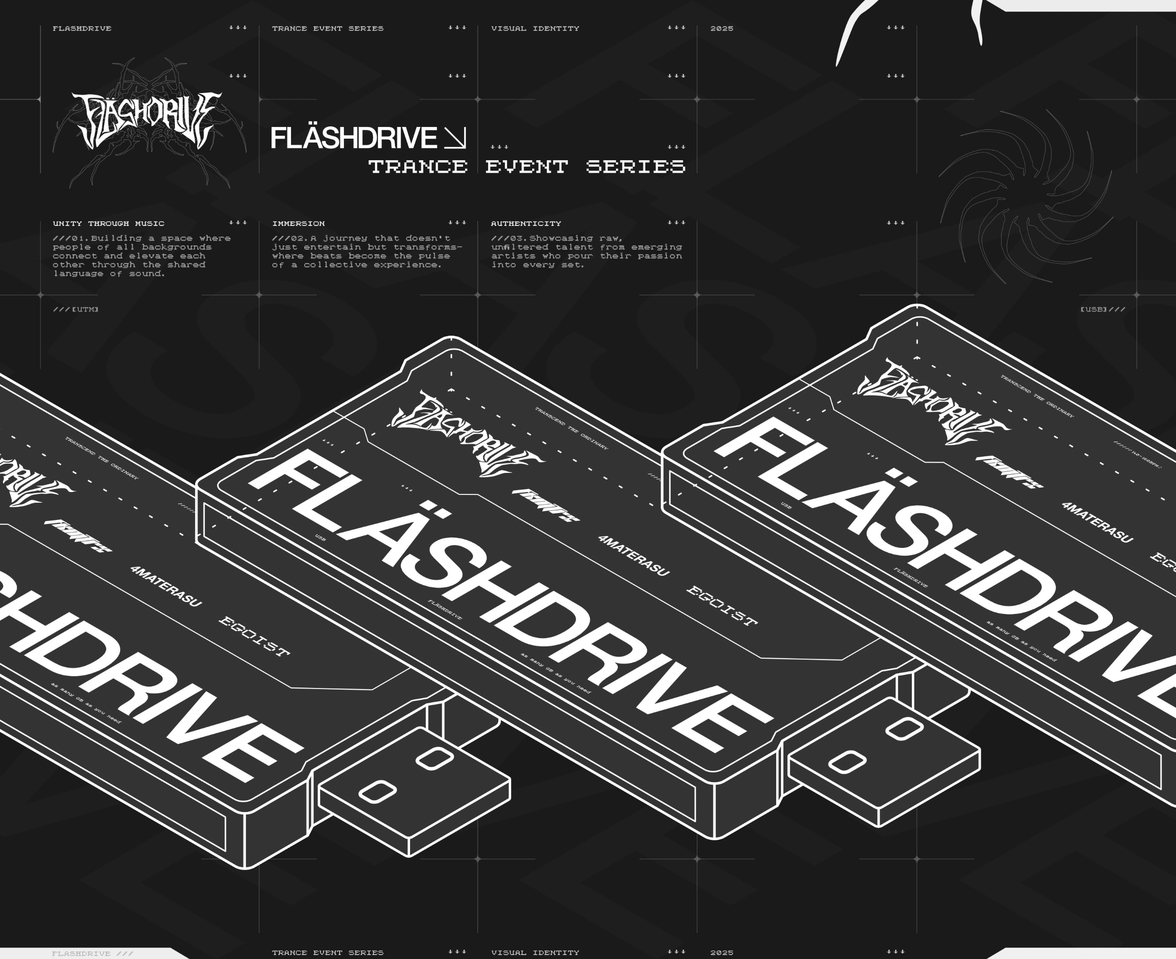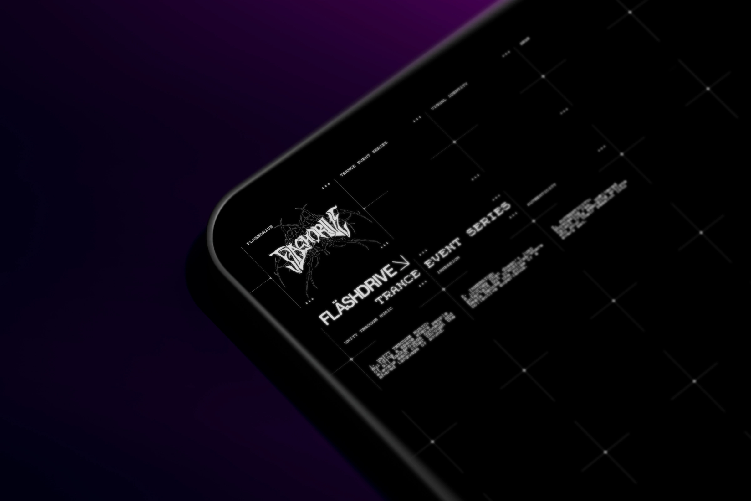 Three pioneering DJs sought to launch their own event series to break from the generic club circuit. The Challenge: How do you visually capture the intense, immersive energy of a trance event series while paying homage to the raw, digital aesthetic of early-2000s rave culture? The identity needed to feel authentically nostalgic yet fiercely contemporary. We built the identity from the ground up, treating the name itself as the main event. A custom, typeface was designed to act as a pulsating digital core, capturing the energy of a corrupted data stream. This became the foundational asset for the entire system.